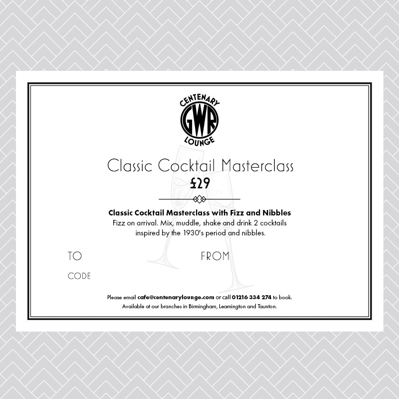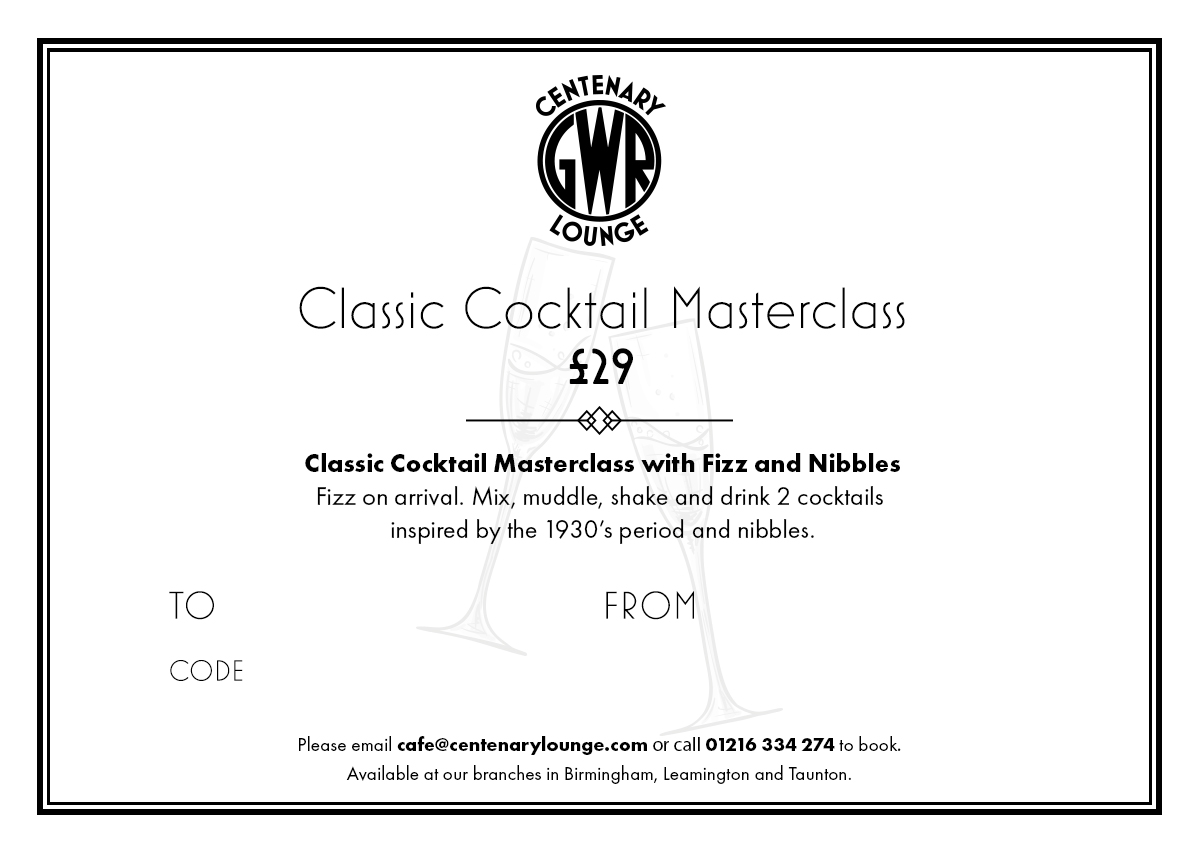Fizz on arrival. Mix, muddle, shake and drink 2 cocktails inspired by the 1930’s period and nibbles. Why not give us a call on 01216 334 274 or drop us an email to enquire further.