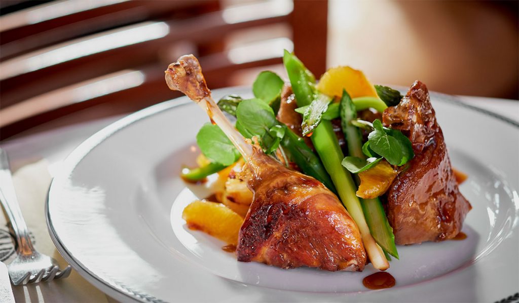 I usually have fairly low expectations for molluscs served at restaurants inland, but have to say was pleasantly surprised. The naturally salty oysters were balanced with the creamy Champagne butter sauce, a divine pairing. The scallops were cooked to perfection, which is a feat in itself, and flavoured delicately my companion confirmed. For our main courses we chose MacNeils Smoked Duck Beast, a confit leg,parfait, potato, chanterelles and blackberry jus and Pan-fried Sea Bass which was served with buttered leeks, potato and bacon, green onion and clams. Both were accomplished plates of food in both aesthetic and flavour and were complemented by the wonderful wine to accompany. I selected the Domaine de Bastide Côtes du Rhône, a classic French red with a punchy, spicy, palate infused with hints of red fruit and cassis, which worked especially well with the duck and my companion opted for a glass of Picpoul de Pinet Serre.