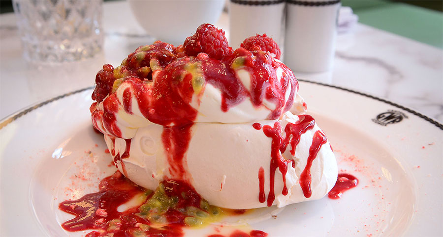 Pavlova with whipped cream, passion fruit, raspberries and pink praline triumphed. My companion chose the White Chocolate Dome and was directed to pour the hot chocolate sauce over until the dark chocolate sponge with blackcurrant sorbet was revealed. There really should be a cautionary notice on the menu to alert diners to the sheer magnitude of the portion sizes. I think I actually consumed my body weight in Pavlova. My advice would be to share one and have cocktails to finish.
